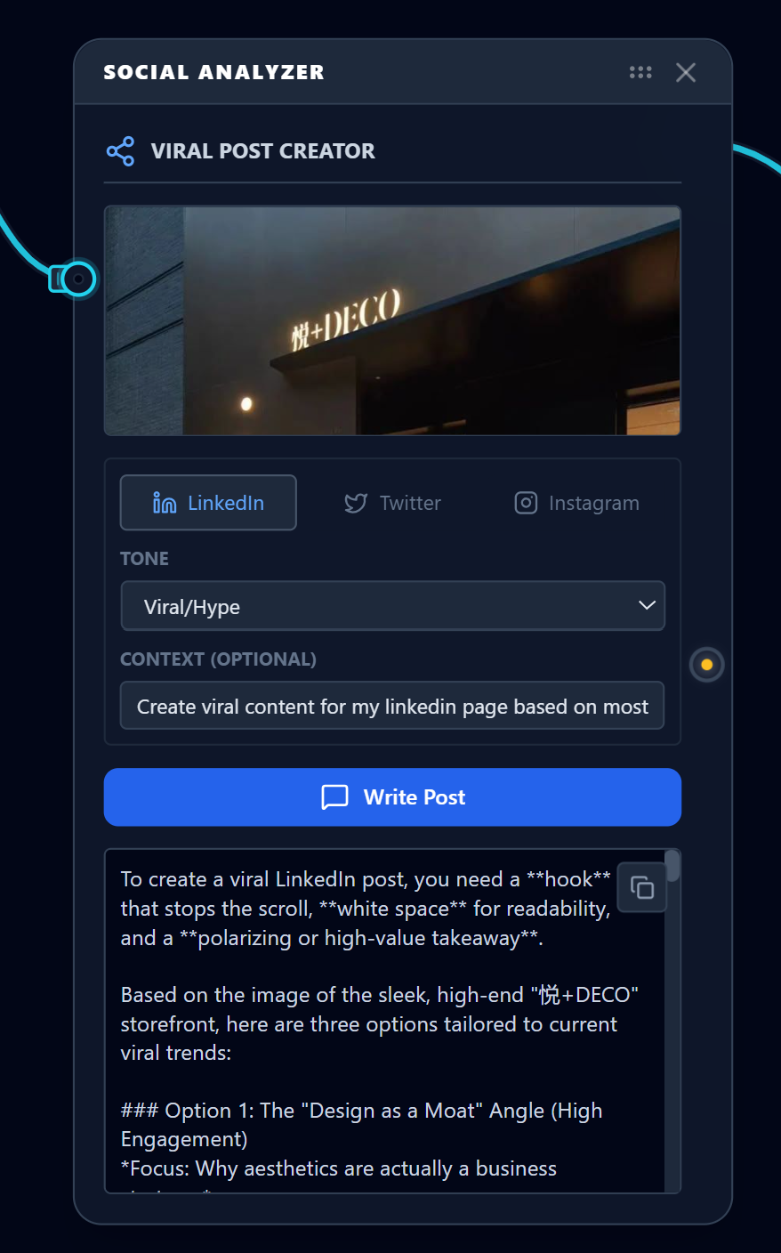 This specialized agent provides context-aware outreach logic. It analyzes visual themes and generates the necessary tags and scheduling required to deploy high-end creative work to a global audience instantly.